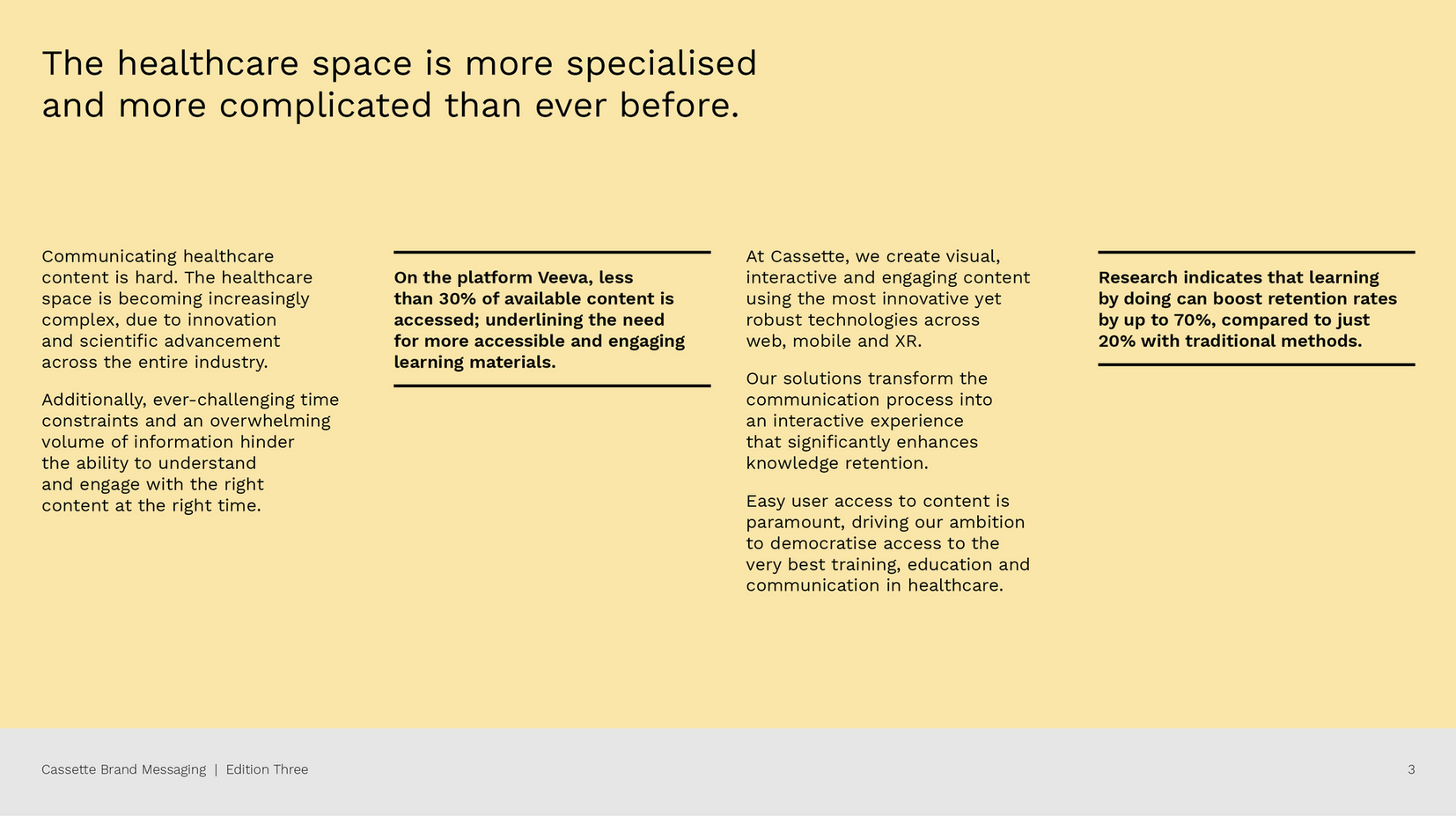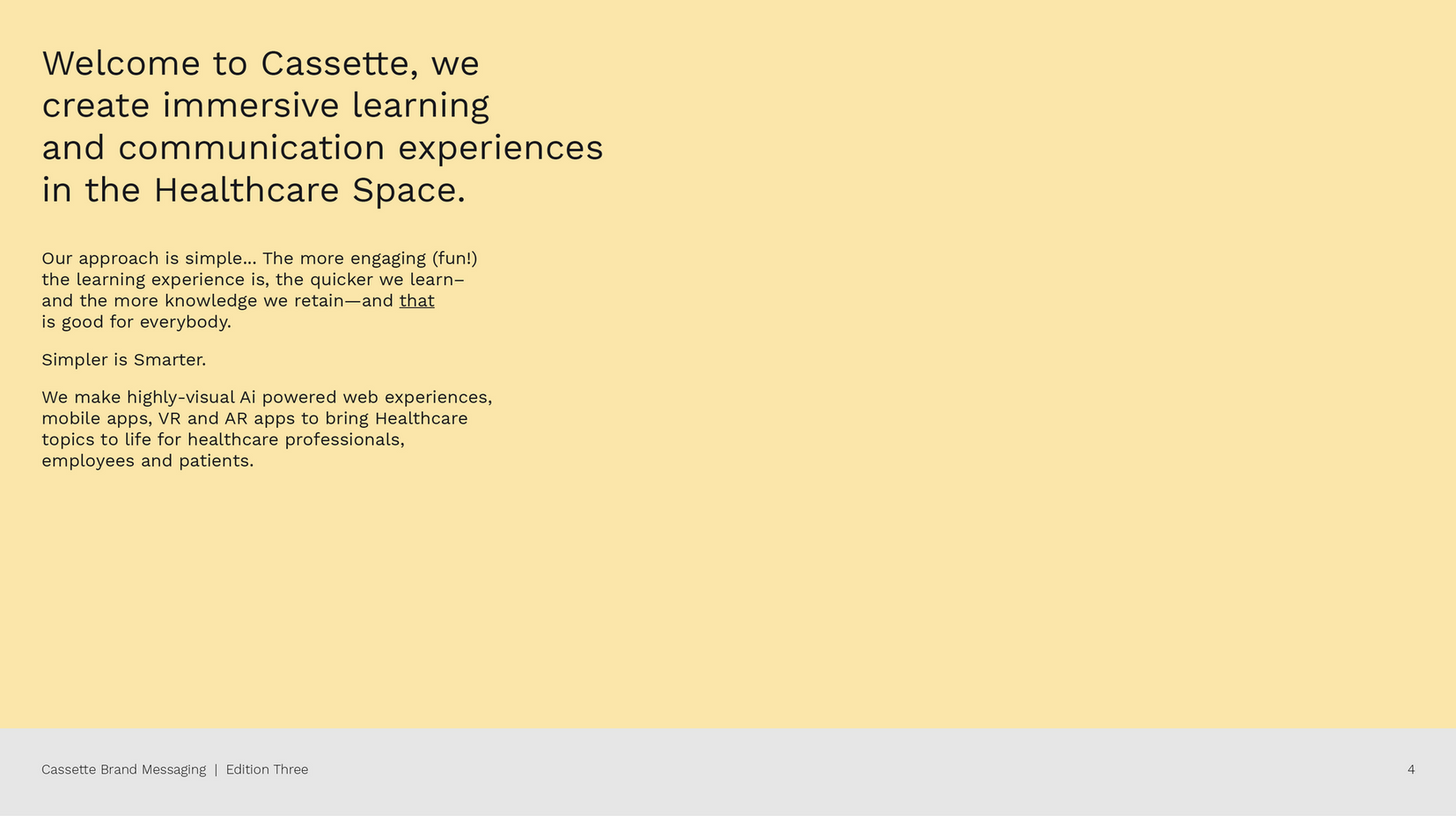 Cassette create immersive learning and communication experiences in the Healthcare Space.